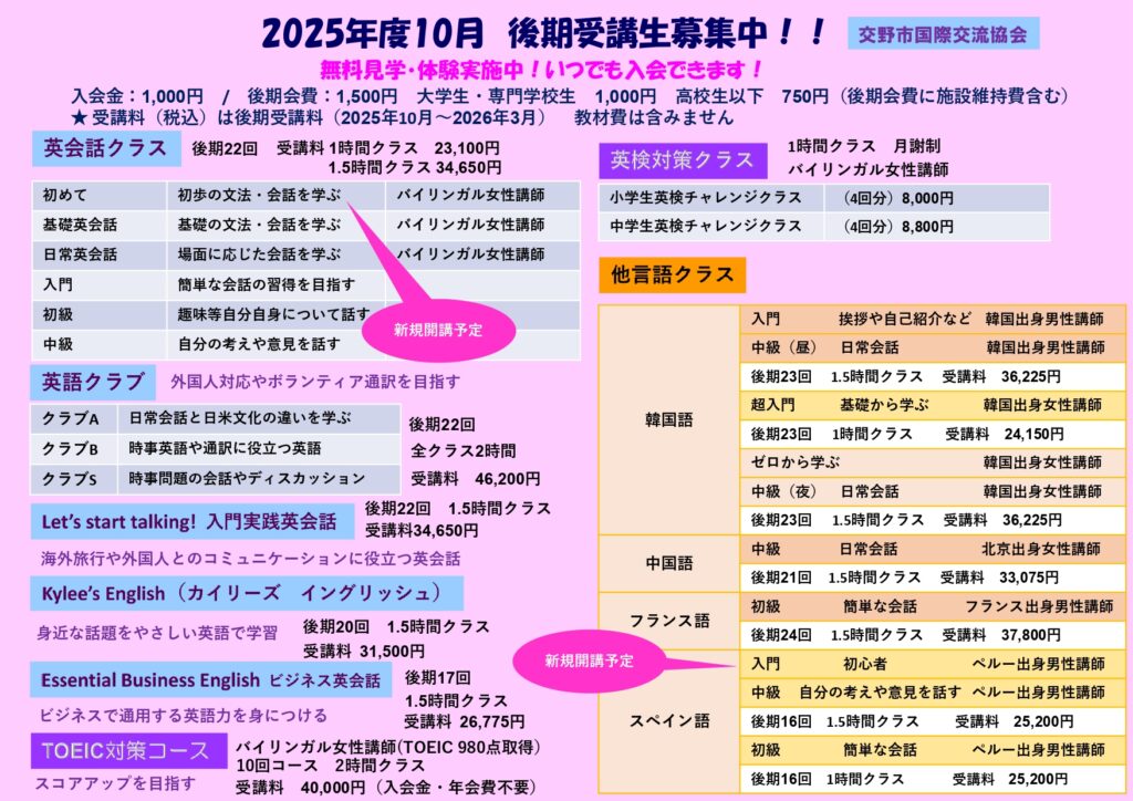 語学を学ぶ絶好の機会となりますので、是非受講のほどご検討いただきますようお願い申し上げます。