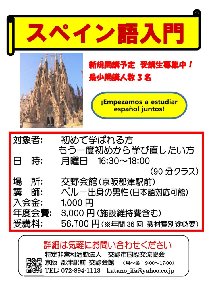 新規開講!スペイン語入門クラス