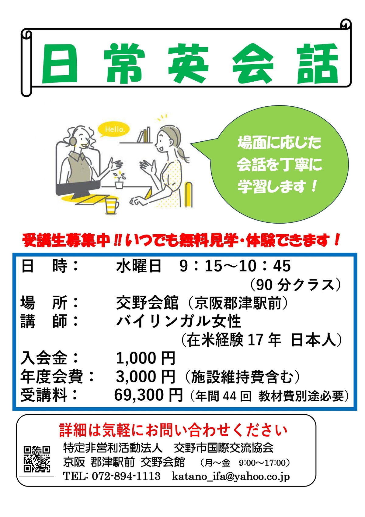 受講生募集中! 日常英会話クラス